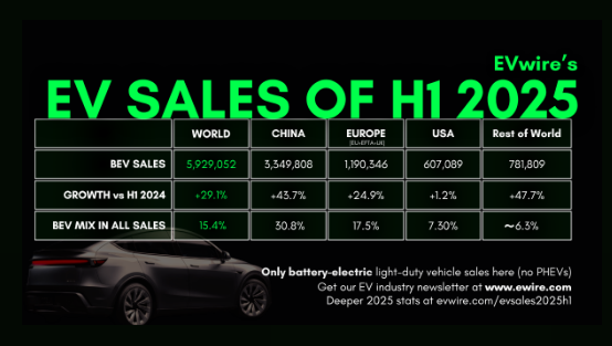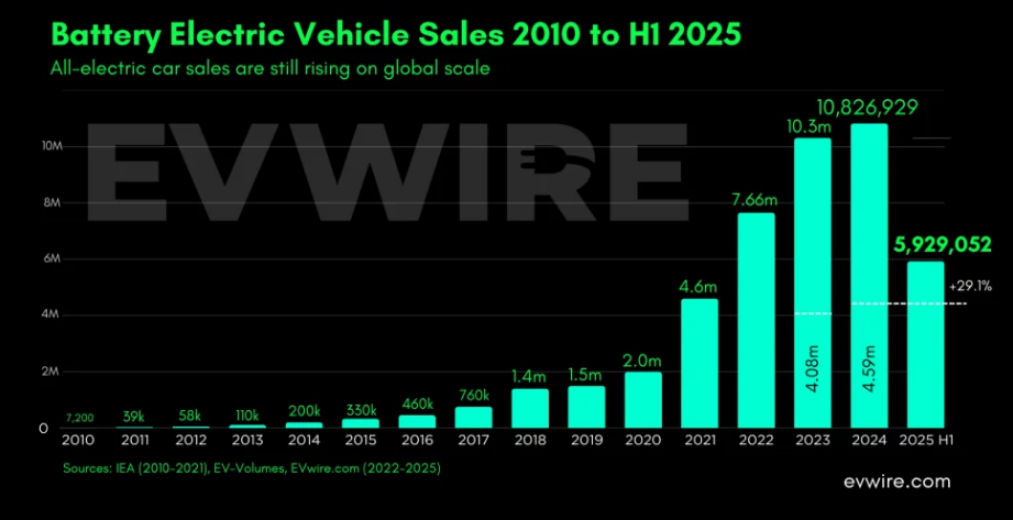بالأرقام تقرير عن مبيعات المركبات الكهربائية عالمياً في النصف الأول من ٢٠٢٥